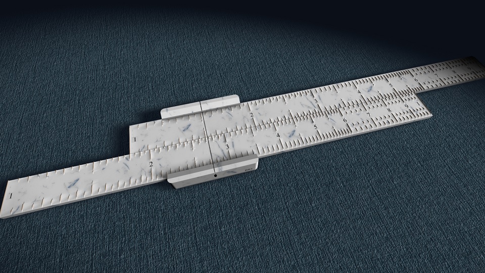 The slide rule is configurable – it can be extended or shrinked, which makes it possible to generate a slide rule for operations like multiplication, division, square root, etc.